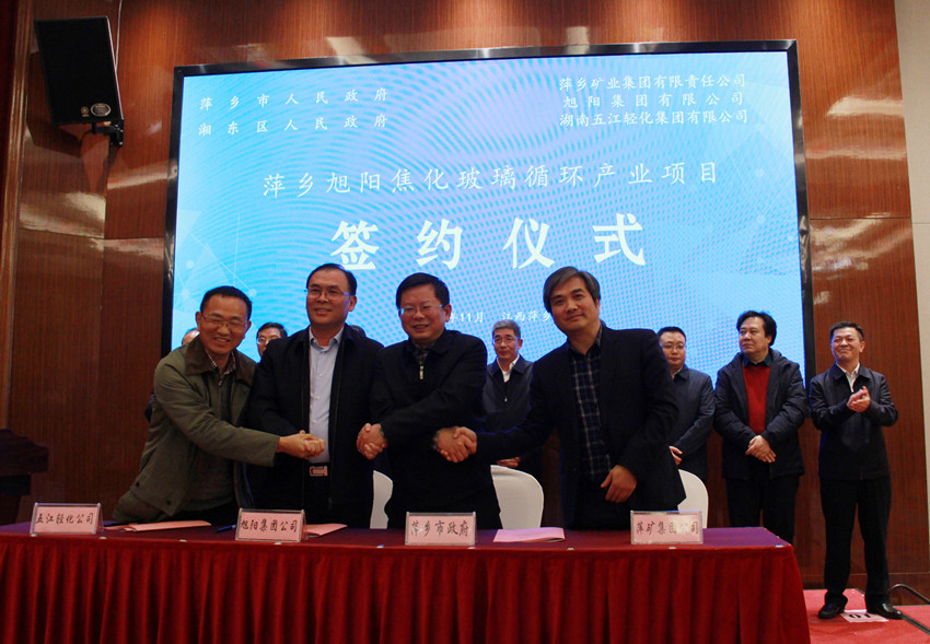 签约仪式上,萍矿集团副总经理江苏波、旭阳集团副总裁李庆华、湖南五江轻化集团副总裁彭灿华,代表三方共同签署了项目合资合作协议;湘东区常务副区长汤雪林与萍矿集团副总经理江苏波、旭阳集团副总裁李庆华、湖南五江轻化集团副总裁彭灿华,代表四方共同签署了招商引资协议;萍乡市副市长杨劲松与萍矿集团副总经理江苏波、旭阳集团副总裁李庆华、湖南五江轻化集团副总裁彭灿华,代表四方共同签署了招商引资协议。